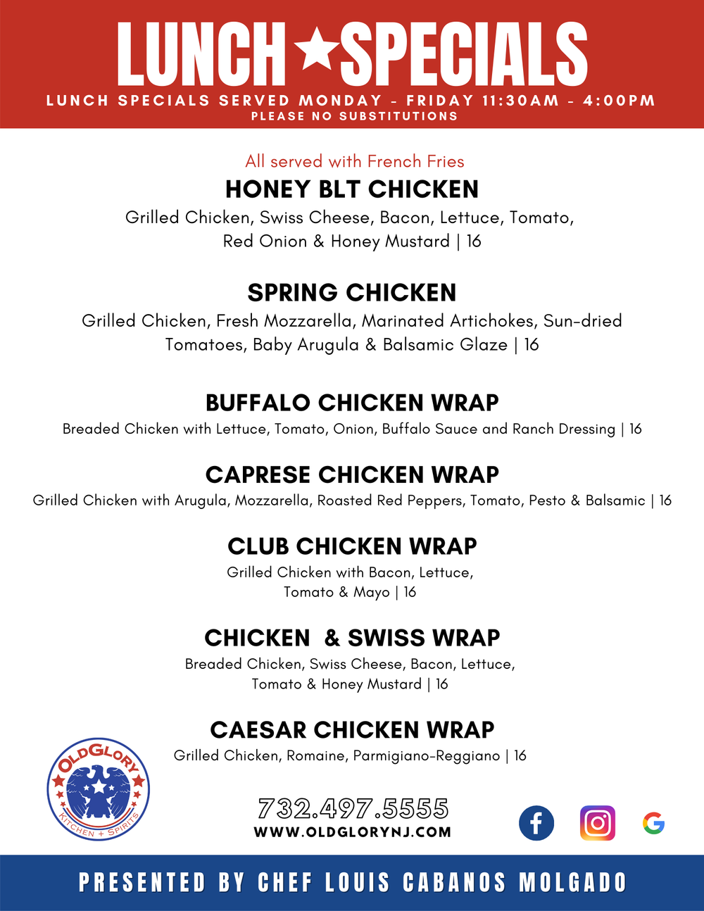 Lunch Menu Old Glory Kitchen Spirits